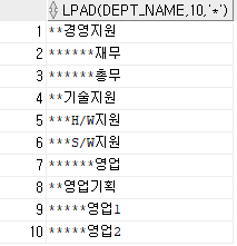 SELECT RPAD(DEPT_NAME, 10, '*')