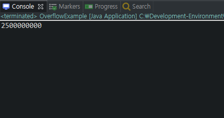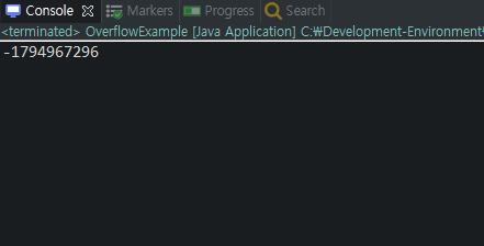 변수 x, y는 int 타입이고 z 역시 int 타입이다. 컴파일 에러도 없다. 하지만 변수 z에 예상한 값이 저장되지 않는다. 그 이유는 int 타입 범위를 초과하였기 때문이다. 올바른 값을 얻기 위해서는 변수가 long 타입이어야 한다.