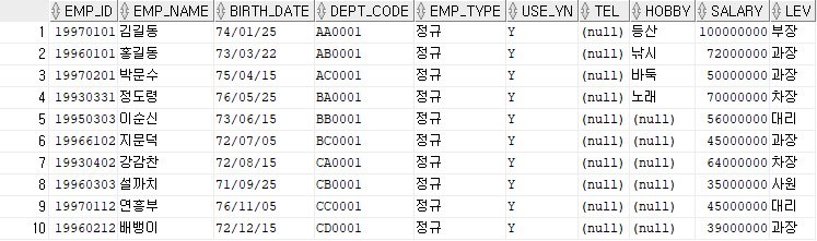 WHERE EMP_NAME = '홍길동';