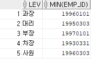 -- 직급별 제일 빠른 사번