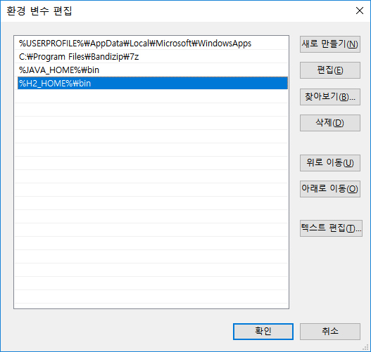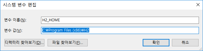 시스템 변수에 H2_HOME 변수를 등록하자.