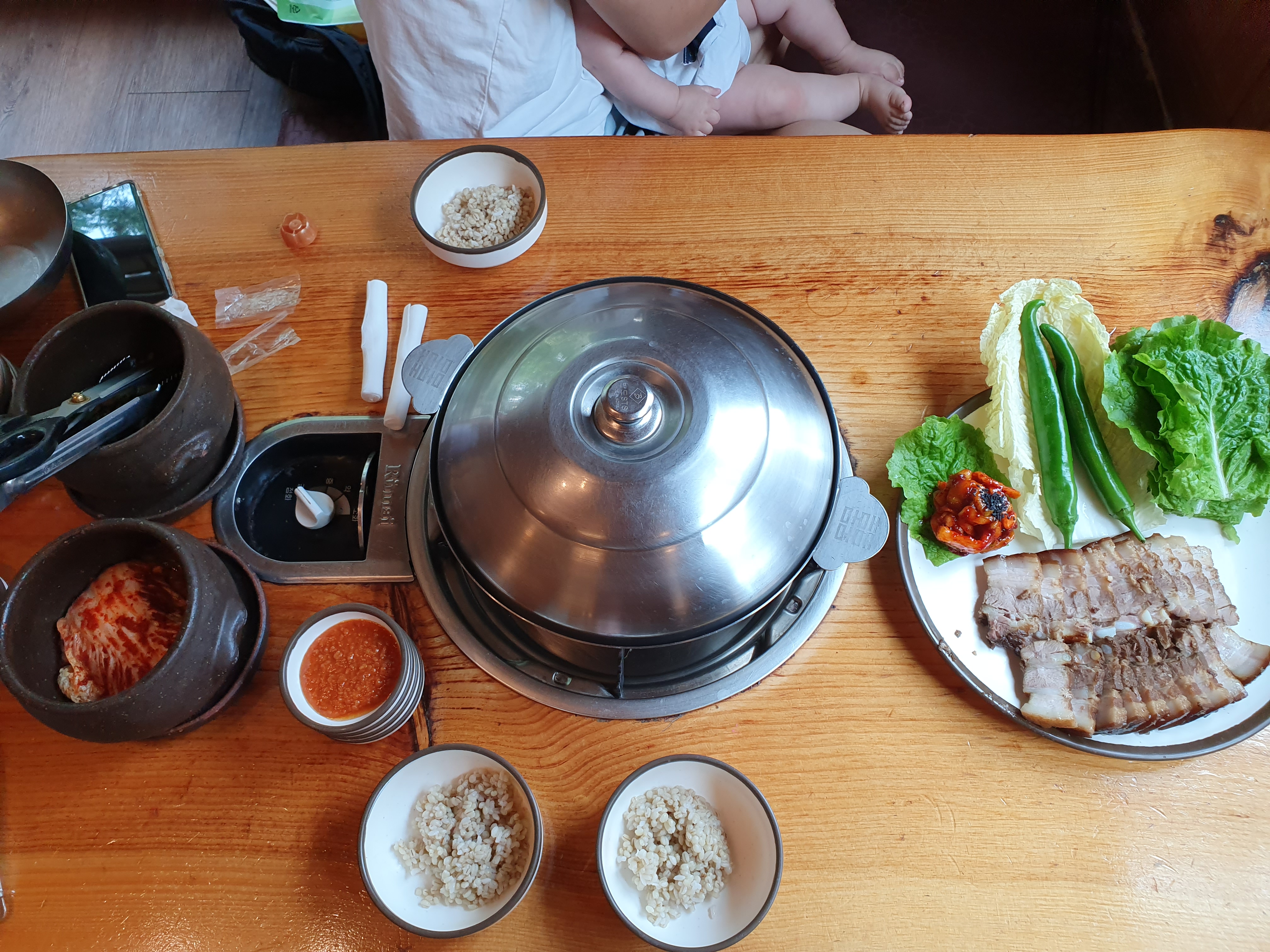 점심 먹으러 방문한 곳은 황토와기와집 이라는 손칼국수 전문점이다. 이 집의 대표 메뉴가 옹심이 칼국수이다. 단지 첫째 아이가 칼국수를 좋아하고 잘 먹어서 방문하게 되었지만 보리밥, 보쌈, 칼국수 모두 맛있게 먹었다. 가족 모두 만족한 점심식사였다.