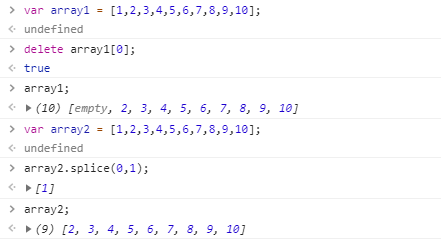 delete로 배열 요소를 삭제할때는 값만 사라지고 배열의 길이는 줄어들지 않는 것을 볼 수 있다. 하지만 splice 함수로 배열 요소를 잘라내면 배열 길이가 줄어든다. 음...?