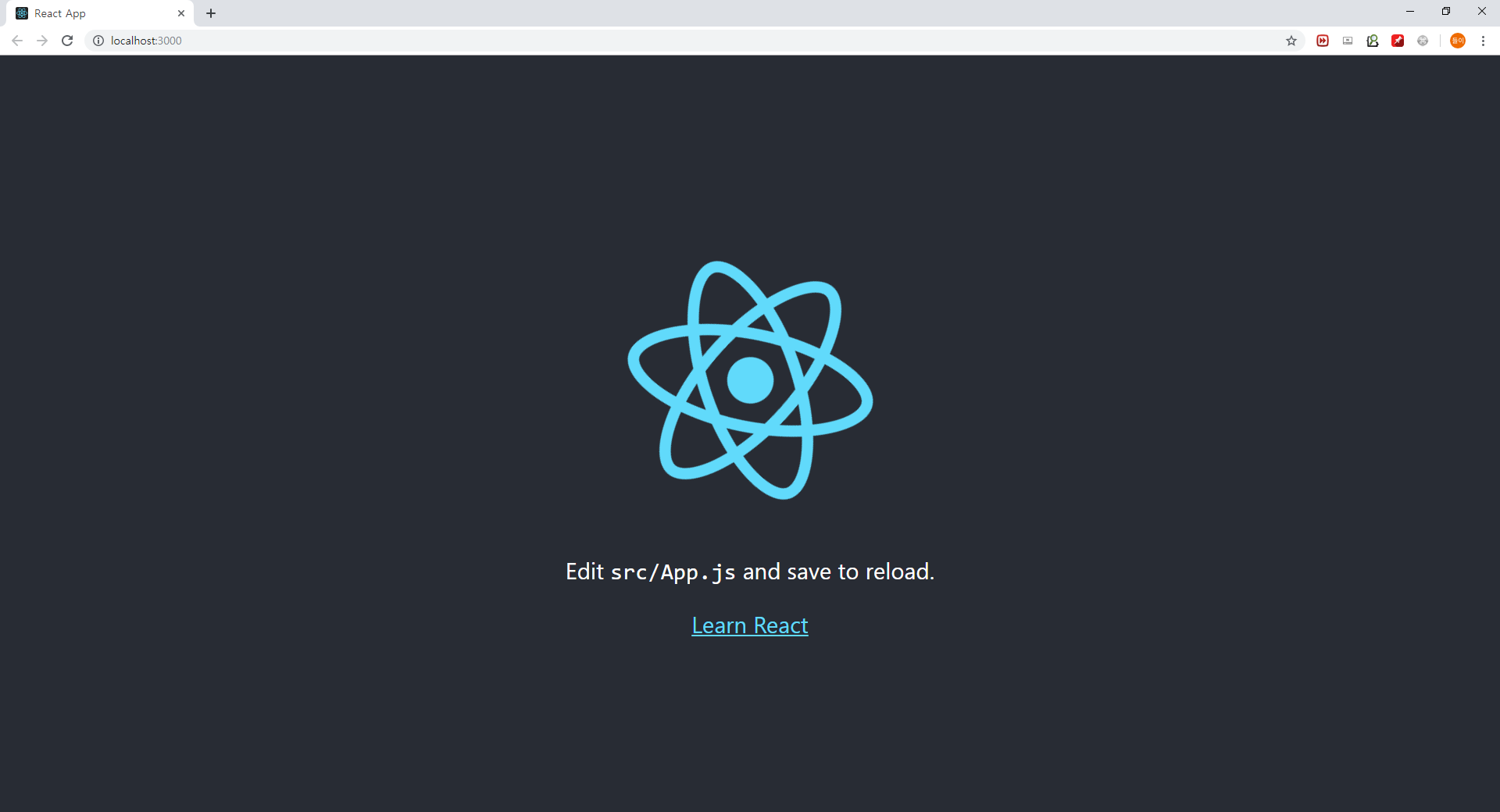 이제 리액트 앱까지 완료가 되면 build, test, eject, start 스크립트가 제공되는데 start를 하면 된다.