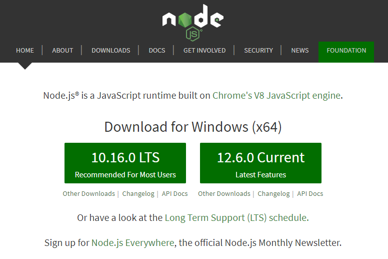 리액트를 사용하기 위해서는 Node 설치가 필요하다.