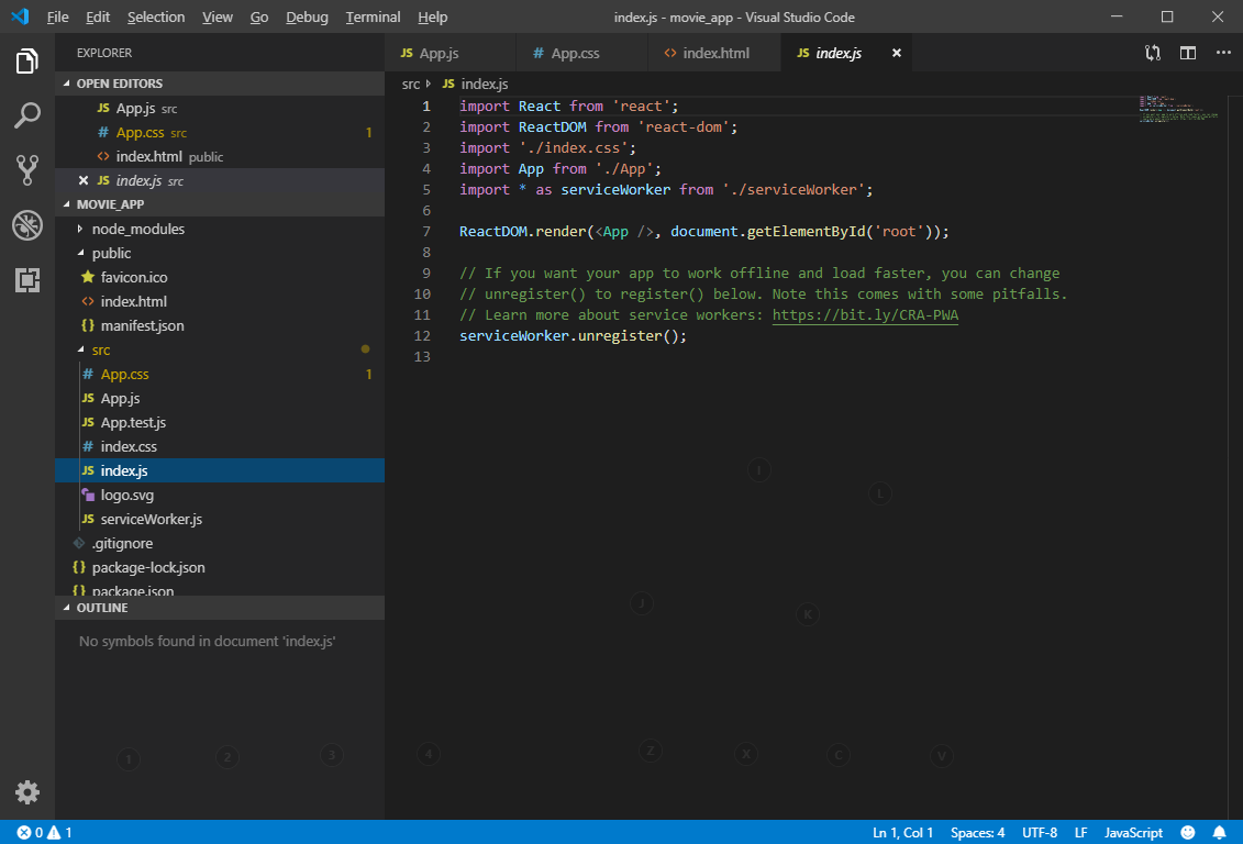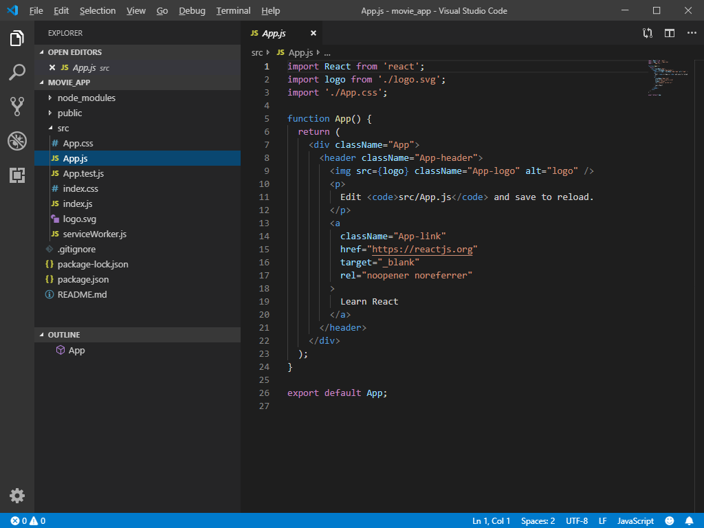 지금까지 리액트에 대한 소개 및 필요한 프로그램 설치를 진행하였다. 이번 포스팅부터 실제 영화 앱을 만들어 보도록 하자.