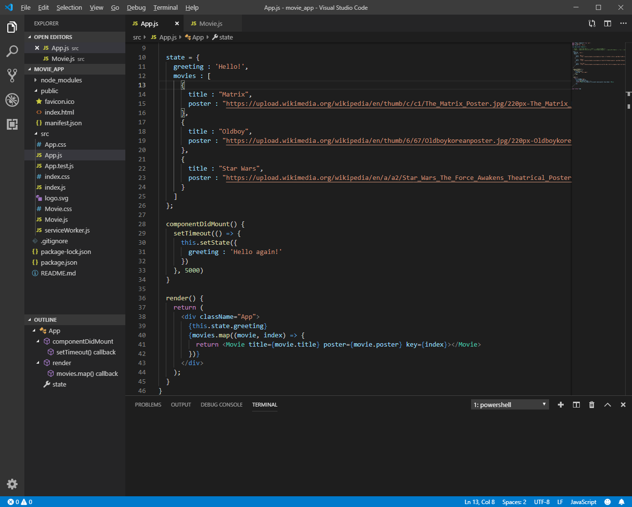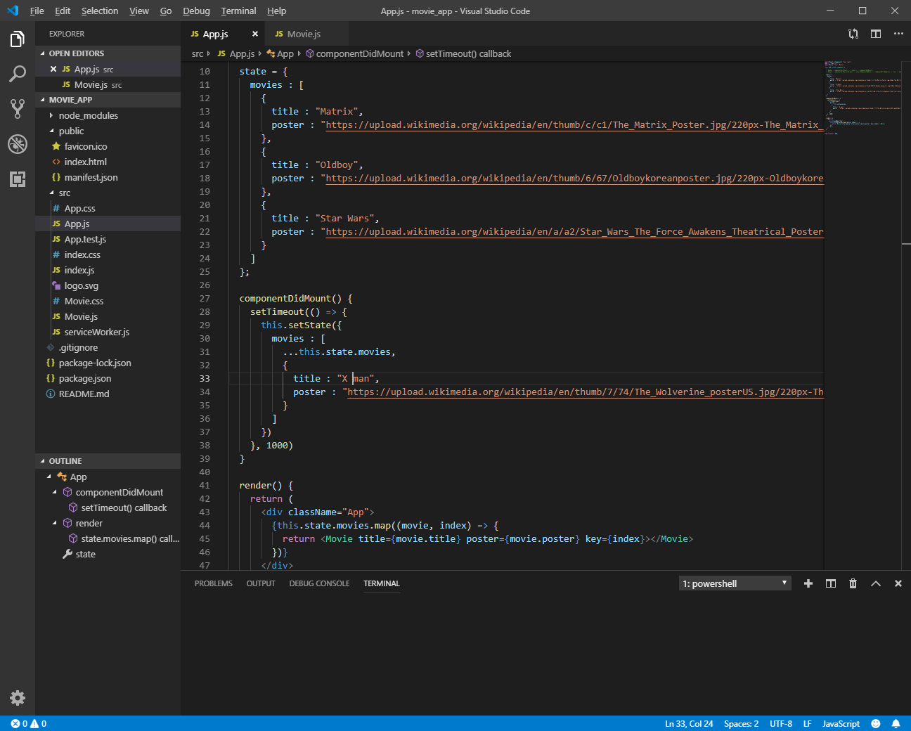 이번 포스팅은 state를 좀 더 연습하는 시간이다. 컴포넌트 외부에 있는 영화 리스트를 state 안으로 옮겨보자.