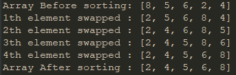 System.out.println((i+1) + "th element swapped : " + Arrays.toString(arr));