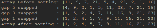 System.out.println("Array After sorting : " + Arrays.toString(shellSort(unsortedArray)));