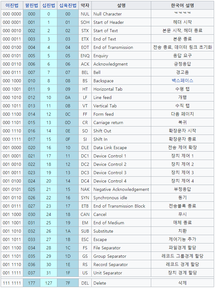 제어 문자표