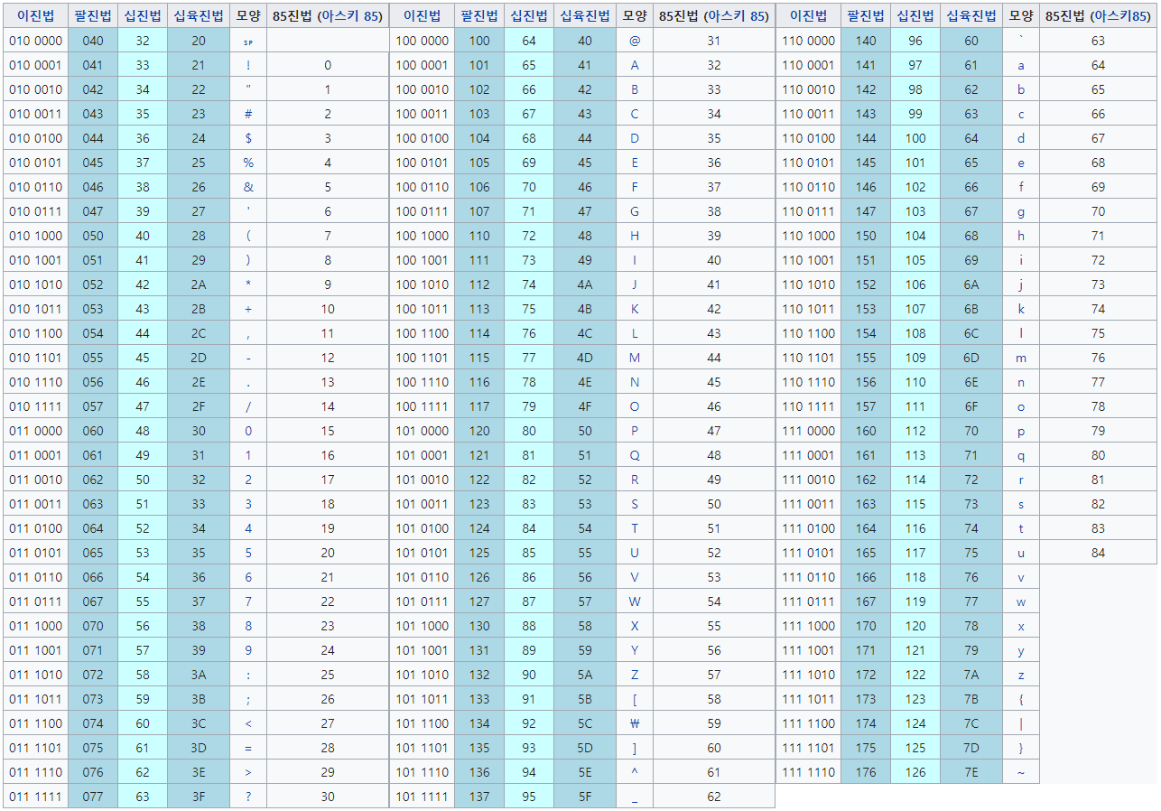 출력 가능 문자표