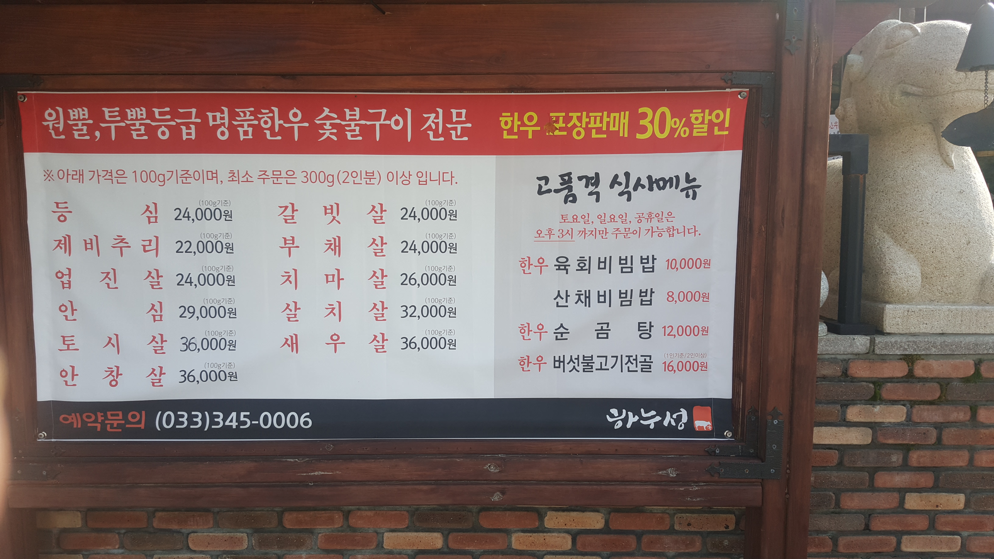 횡성지역에 많은 정육식당이 있지만 하누성은 고급 이미지를 내세운 것 같다. 직원들 또한 친절하고 규모도 상당했지만 가격적으로는 착한 가격은 아니다. 횡성 지역이 한우 특산물을 내세우지만 몇 번을 방문해 봤지만 싸다는 느낌은 크게 받지 못했다. 물론 고기의 질은 상당히 좋다. 이번 방문한 하누성의 경우 등심, 안심, 갈빗살, 치마살, 살치살, 새우살을 먹어보았다. 제가 추천하는 부위는 갈빗살, 치마살이다. 고기의 질이 좋아 대부분 맛있지만 갈빗살과 치마살이 유독 씹는 맛이 있어서 더욱 맛이 있었다. 방문하신다면 2가지 부위 추천을 드린다.