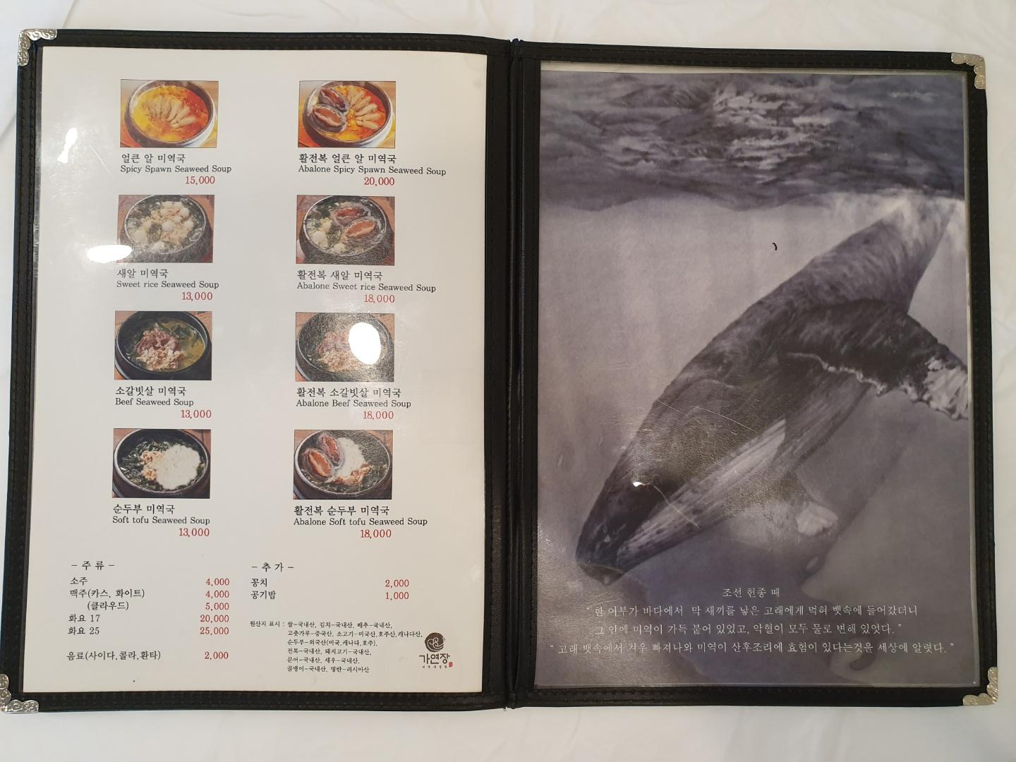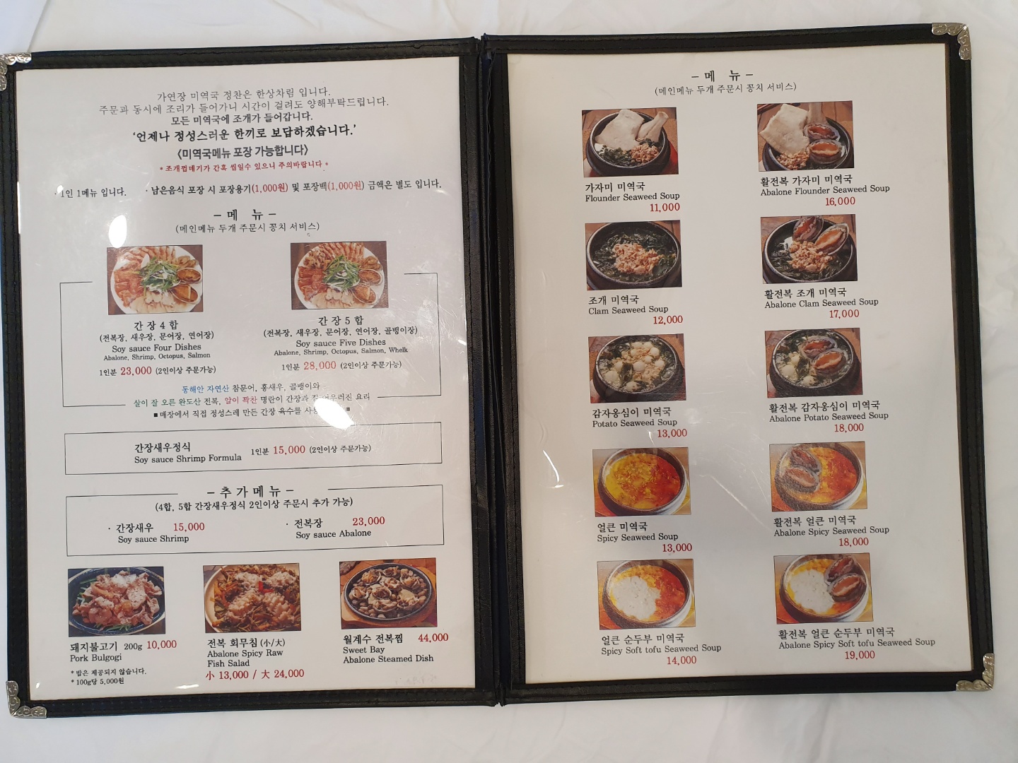 솔직히 미역국을 사 먹다는 느낌을 평소에 받지 못했다. 집에서도 충분히 해 먹을 수 있고 특별한 메뉴라고 생각되지 않기 때문인 거 같다. 또한 가격적인 면에서도 미역국이 이렇게 비쌀까 라는 의문이 들기도 했다. 제가 먹었던 메뉴는 소갈빗살 미역국이다. 아이들 때문에 돼지불백을 추가로 시켰지만 아이들이 미역국이랑 더 잘 먹었다. 국물도 해장하기 너무 좋았고 미역국이 이렇게나 맛이 있구나란 생각을 다시 하게 되었다. 미역국 종류가 상당히 많다. 해장용이라면 얼큰 보다는 맑은 쪽이 훨씬 좋아 보인다. 국물은 아직도 생각이 나게 만든다.