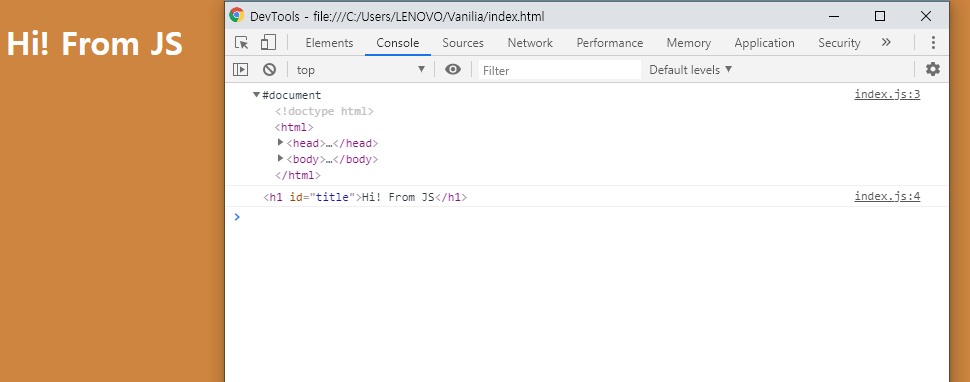title.innerHTML = 'Hi! From JS';