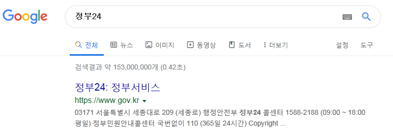 자주 사용하는 포털에서 "정부24" 검색을 하자.