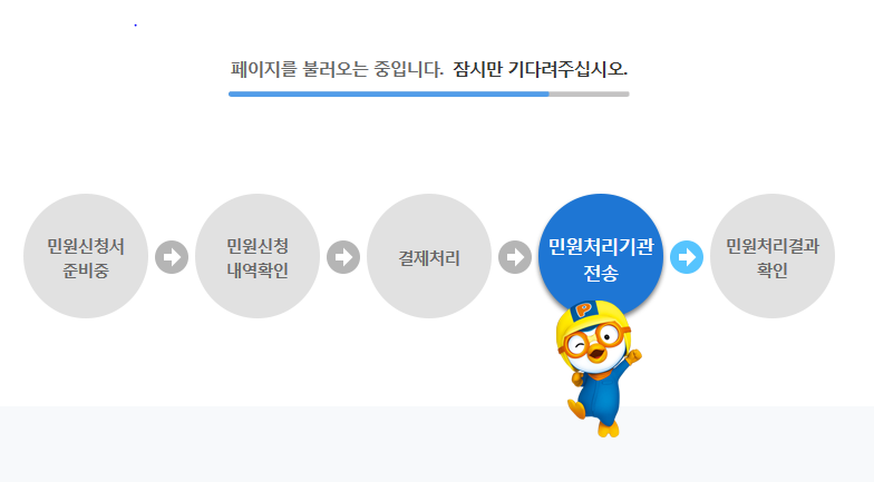 민원신청을 클릭하면 뽀로로를 잠시 만나게 되고 곧 완료가 된다.