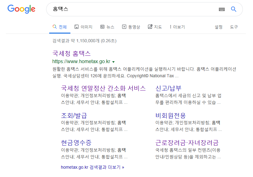 자주 사용하는 포털에서 "홈택스" 검색을 하자.