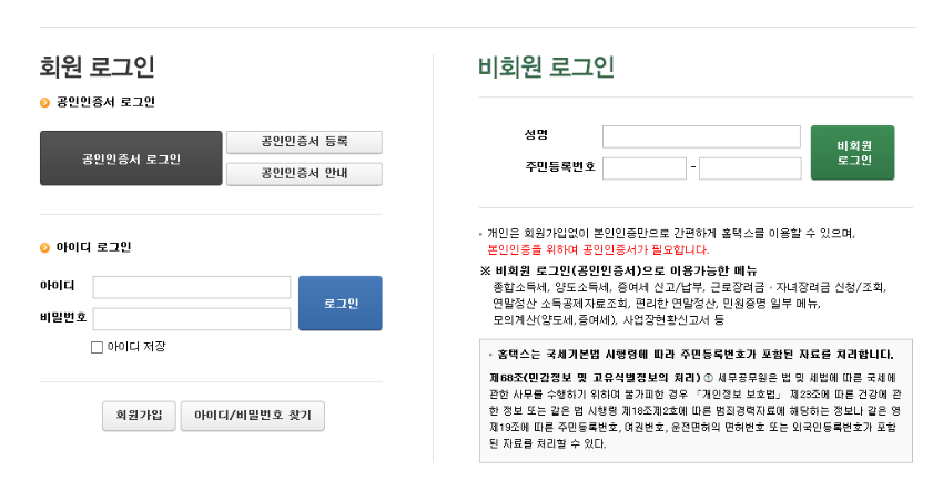 국세청 홈택스 사이트에 들어오게 되면