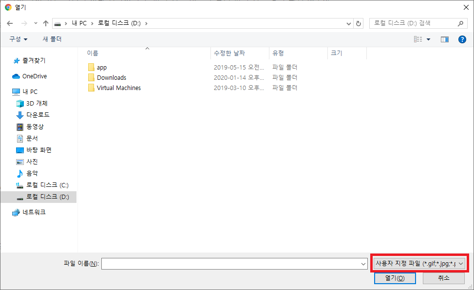 사용법은 특정 확장자를 지정하거나 미디어 타입을 지정하는 방법이 있다.