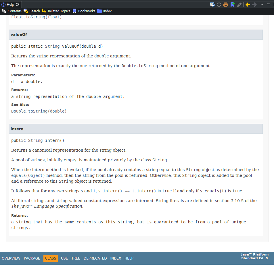이렇게 간단한 방법으로 손쉽게 Java API doc 확인이 가능하다.
