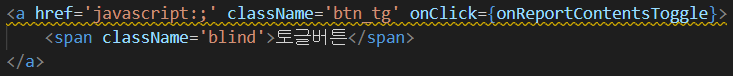 웹퍼블리셔가 위와 같이 a 태그를 정의해 주는 경우가 빈번하다. 이런 경우 React에서는 Warring이 나타난다.