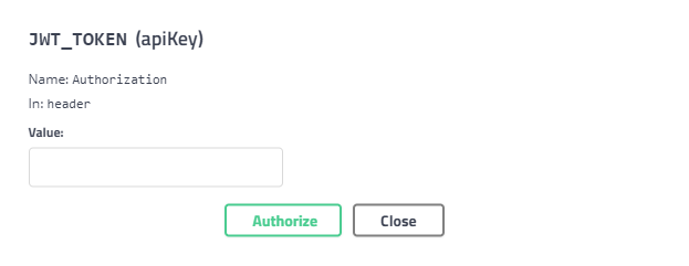 Authorize 버튼을 눌러보면 Swagger Configuration에서 설정한 정보를 바탕으로 값을 셋팅을 할 수 있다. 설정이 완료되면 Swagger의 모든 API는 JWT_TOKEN에 대한 인증정보를 기본적으로 가지고 API요청을 하게 된다.