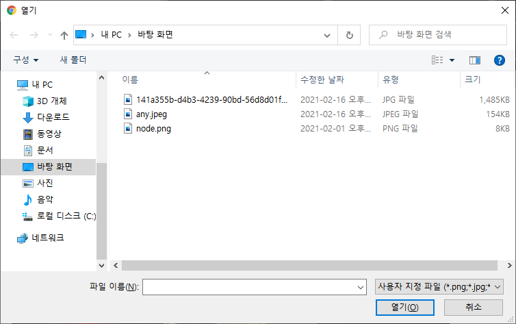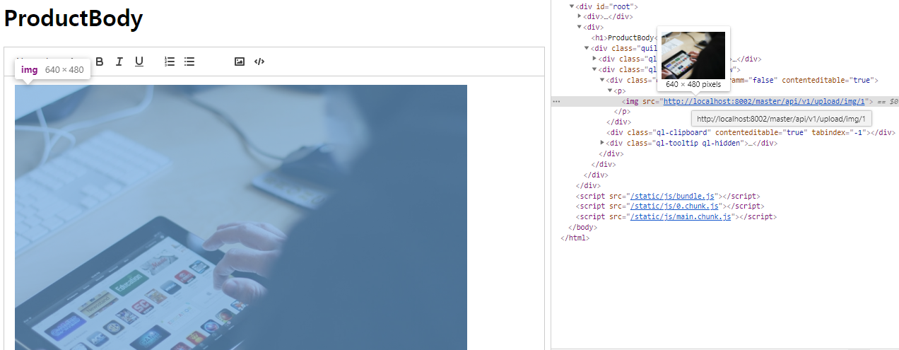 에디터에서 직접 파일을 선택하여 Back end API를 통해 이미지를 구성할 때 사용하는 방식이다. 위 소스 코드에서 imageHandler 함수를 참조하면 된다.
