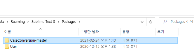 서브라임에서 Perferences -> Browse Package를 선택하고 다운로드한 패키지 폴더를 옮기면 된다. 이후 서브라임을 한번 재시작하면 적용이 완료된다. Camel case 단축키는 '"ctrl+alt+c", "ctrl+alt+c"이다 (두 번 연속)