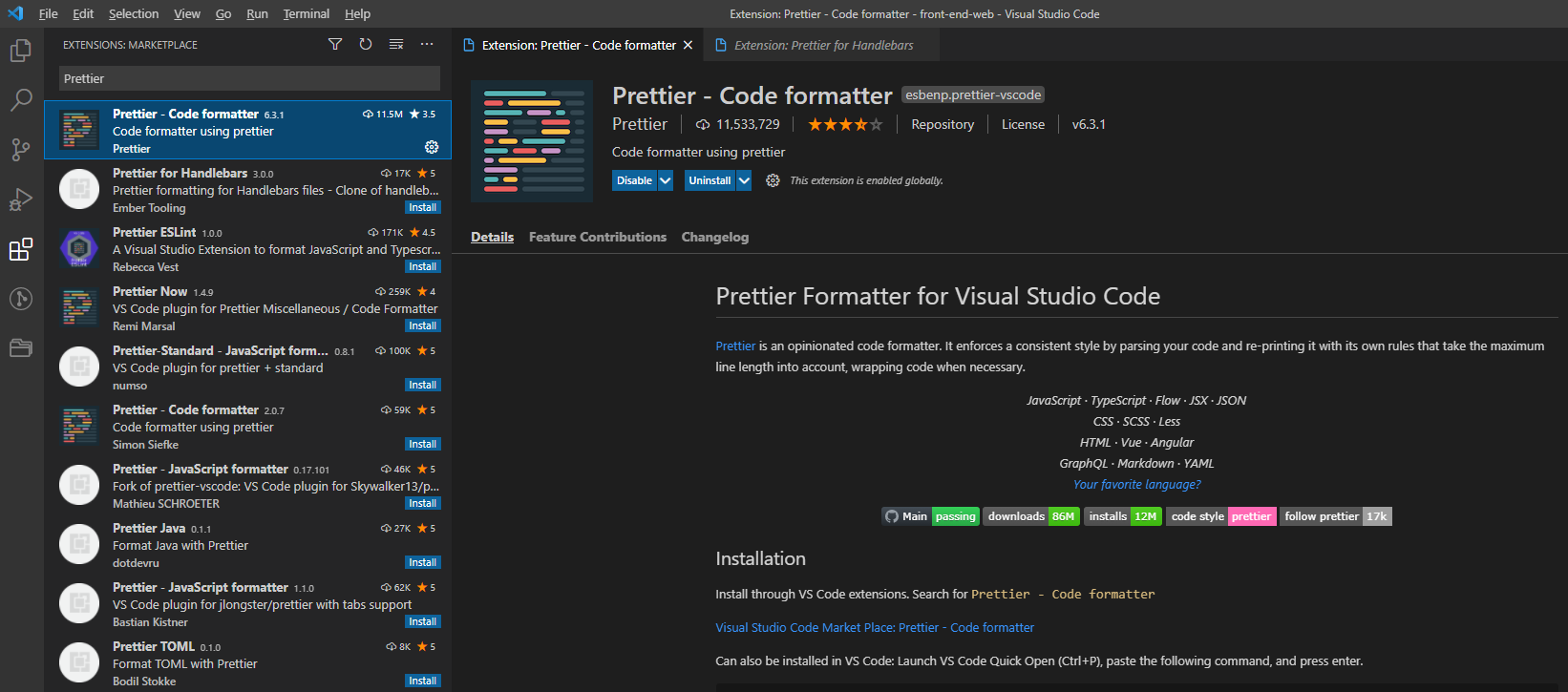 단축키(CTRL + K + L)를 통해서 자동정렬을 할 수 있지만, Prettier를 이용하면 저장만으로 정렬이 가능하다.