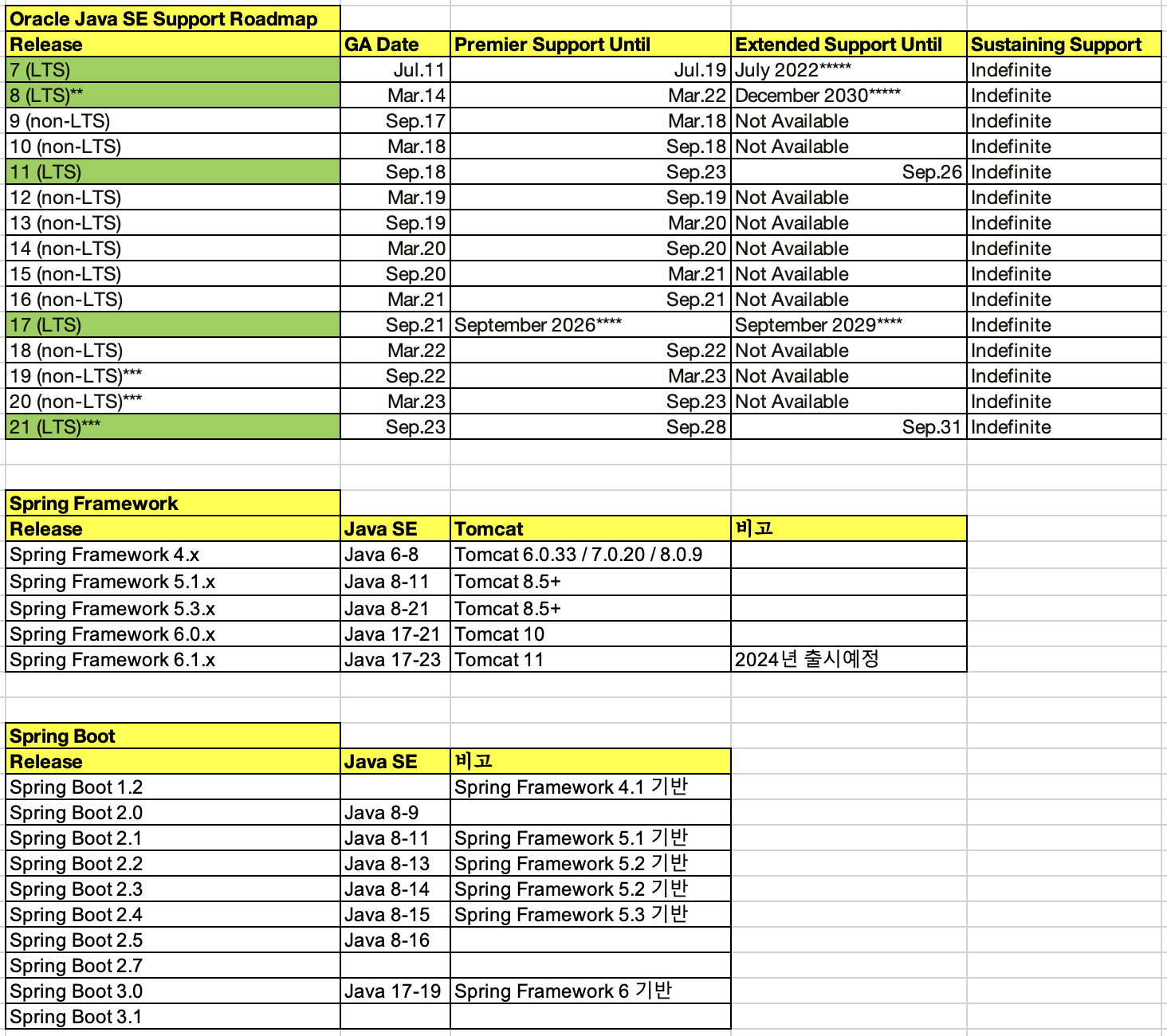 이번에는 Spring Framework & Spring Boot에 지원되는 Java 버전(LTS)에 대해 확인하고 사용하자.
