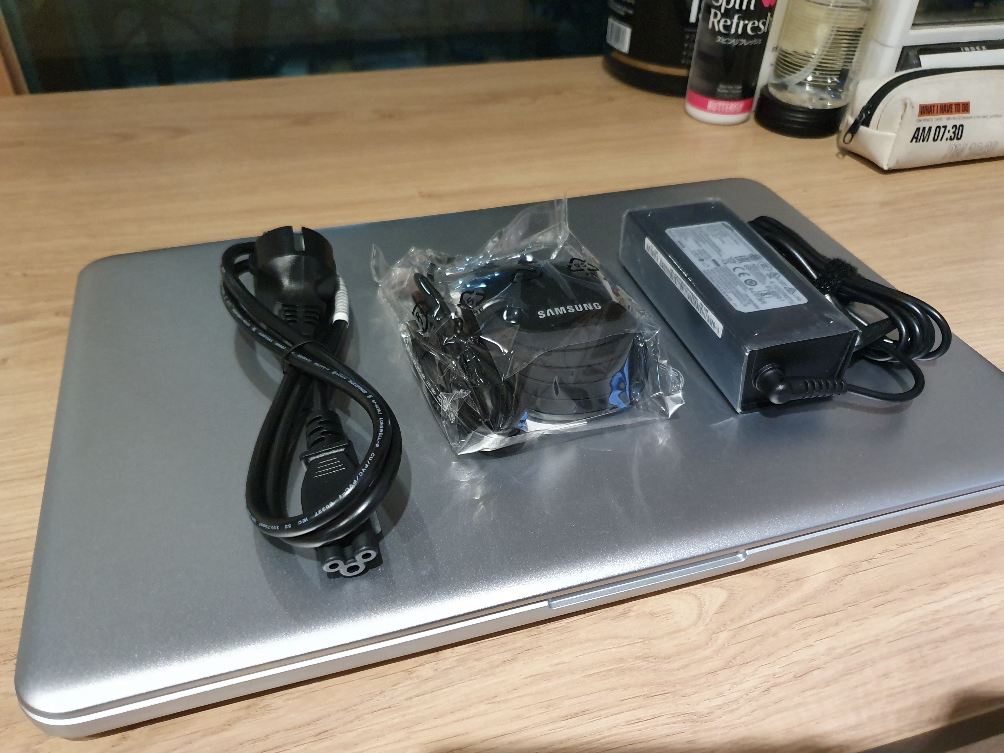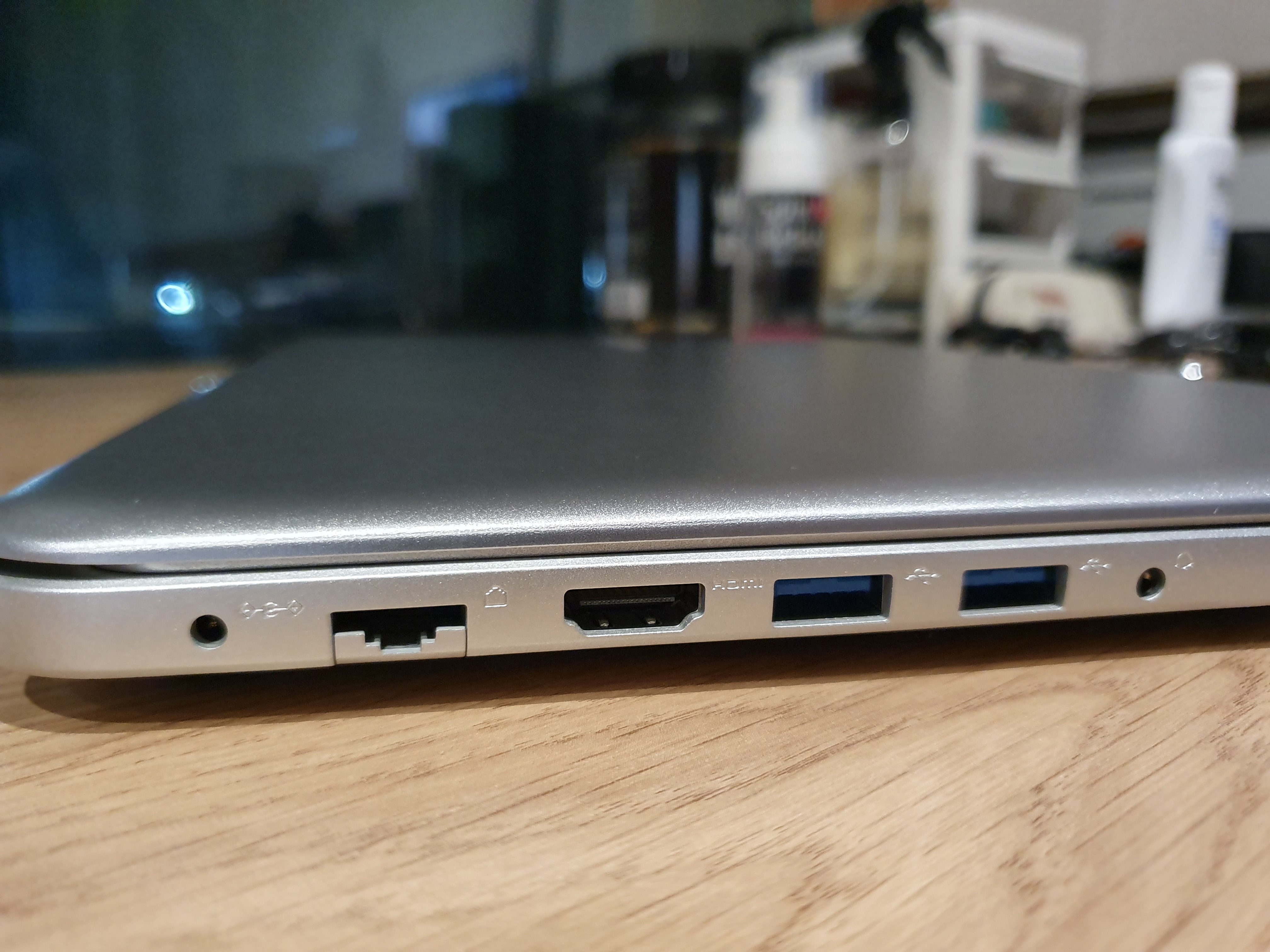 노트북 구성은 본품, 어뎁터, 마우스로 단순하다. 포트는 랜, HDMI, USB 3.0 2개, USB 2.0 1개, 이어폰으로 구성되어있다. 외관 이미지는 메탈에 펄이 살짝 들어가 있는 색상이다. 디자인 자체도 뭔가 둥글둥글하다고 해야 할까? 나쁘지 않다.