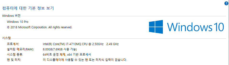| CPU | Intel Core i7 4세대 | Intel Core i7 8세데 |