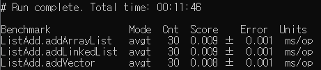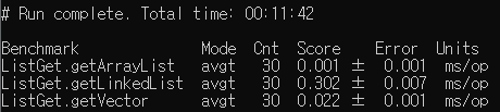 List 관련 클래스들의 성능을 비교해 보기 위해 아래와 같이 JMH 테스트 코드를 만들었다.