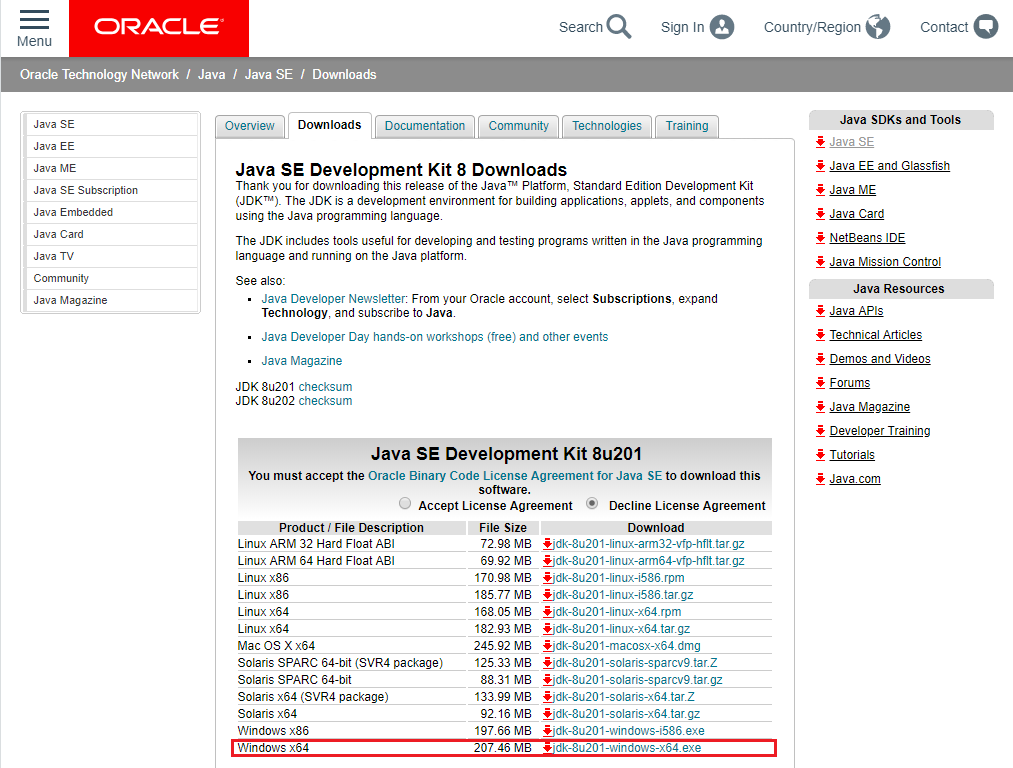 필자는 기존에 사용하던 자바 jdk1.8.0_77 버전을 사용하도록 하겠다. 신규 다운로드 시 오라클 아이디가 필수로 필요하니 계정이 없으신 분들은 가입을 하시기 바란다.