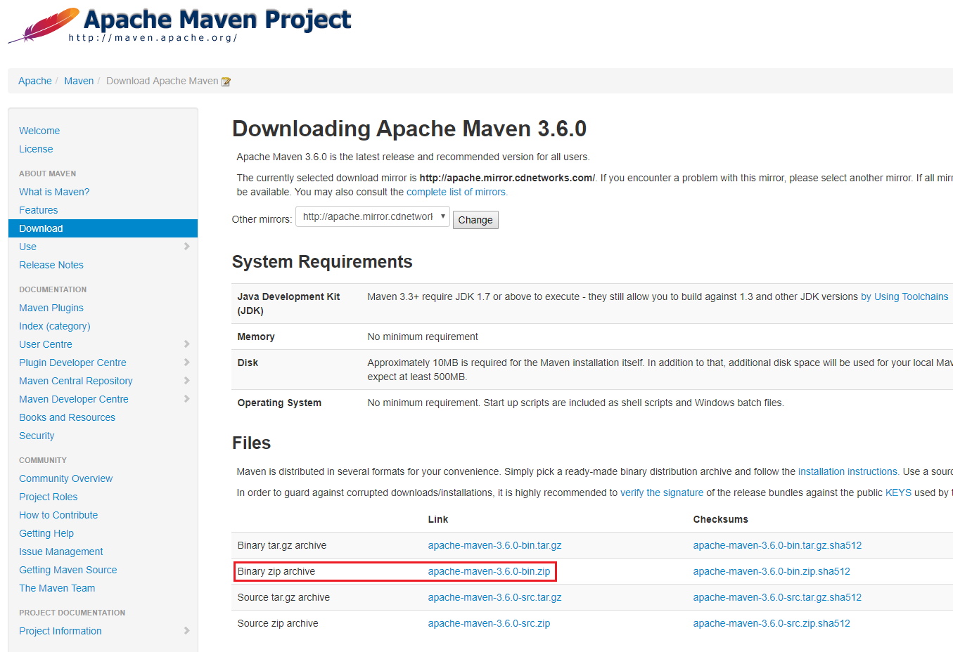 Maven 3.6.0을 받는다.