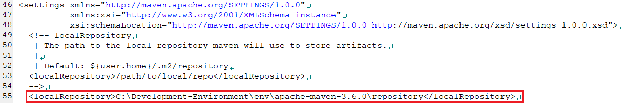 <localRepository>C:\Development-Environment\env\apache-maven-3.6.0\repository</localRepository> 추가