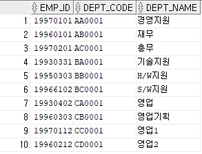 WHERE A.DEPT_CODE = B.DEPT_CODE;