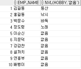 , NVL(HOBBY, '없음')