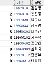 -- TEMP 테이블에서 사번과 이름을 함께 조회하라.