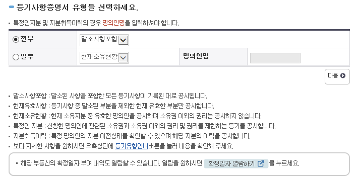 금융기관 및 공공기관에서 원하는 등기사항 증명 유형을 알려주기 때문에