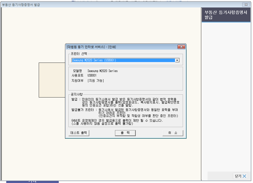 아래와 같이 프린터를 연결하여 출력하면 된다.