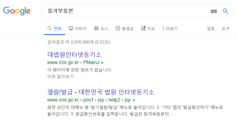 자주 사용하는 포털에서 "등기부등본" 검색을 하자.