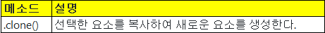 다음 메서드를 사용하면 선택한 요소나 콘텐츠를 복사하여 새로운 HTML 요소나 콘텐츠를 생성할 수 있다.